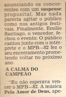 El Festival MPB Shell fue realizado entre marzo y setiembre de 1982 por la TV Globo.